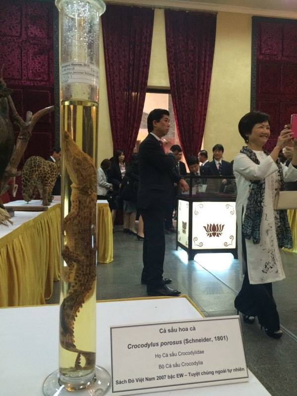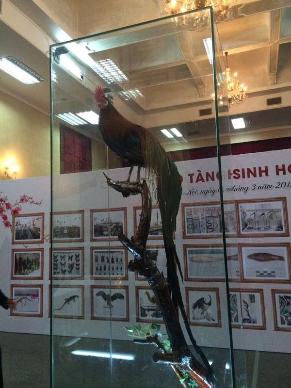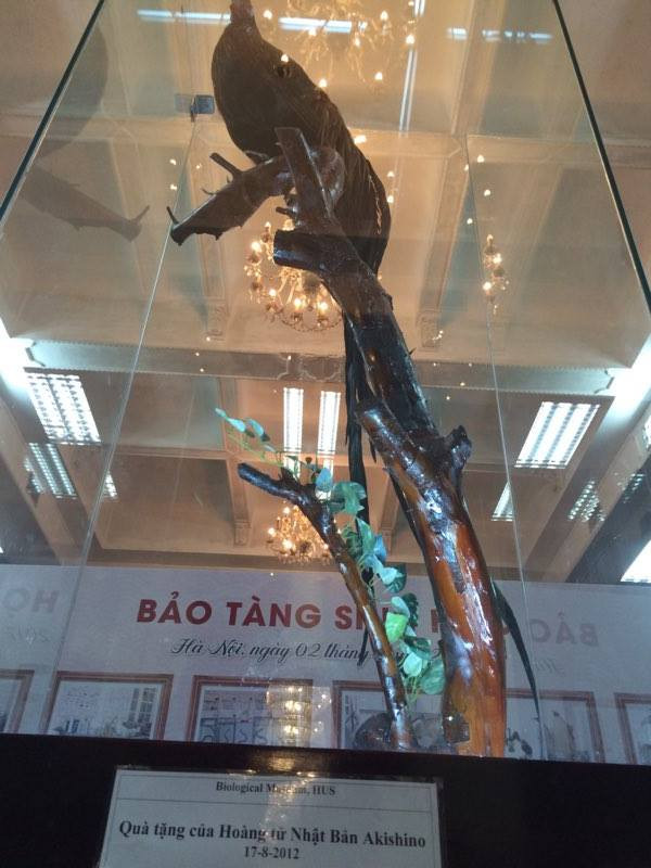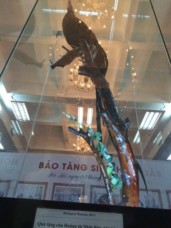 Bên cạnh tiêu bản cá bống trắng, Bảo tàng cũng đang lưu giữ tiêu bản chú gà trống, quà tặng của Hoàng tử Akishino năm 2012.