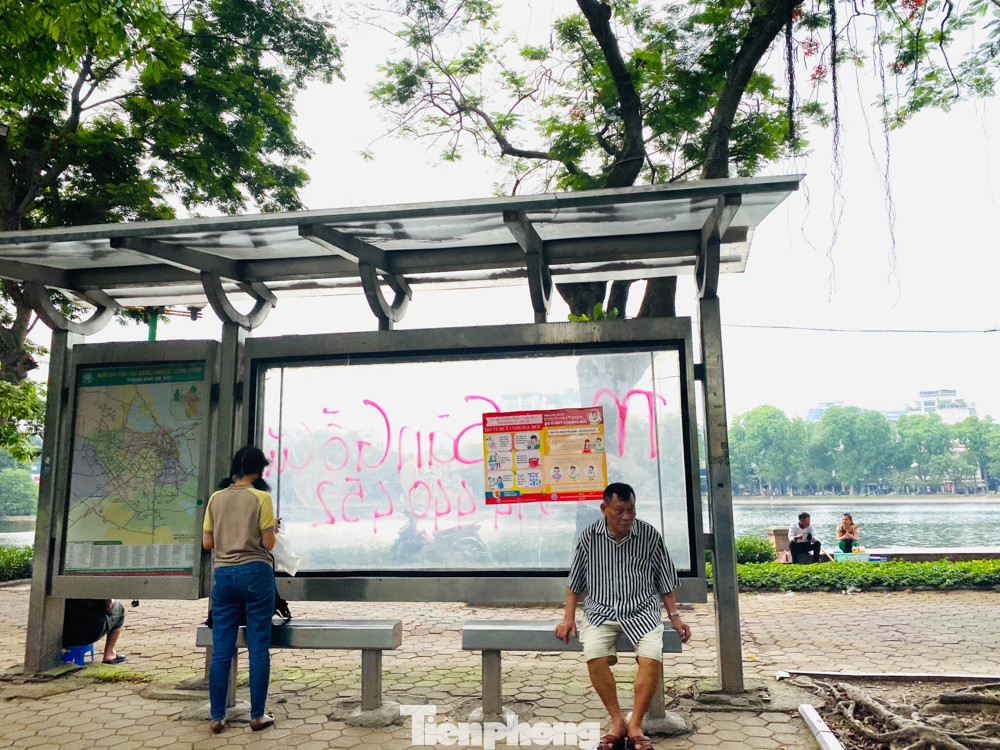 Rất nhiều bến xe buýt đã bị vẽ bậy, dán tờ rơi quảng cáo vô tội vạ lên rất mất mỹ quan đô thị.