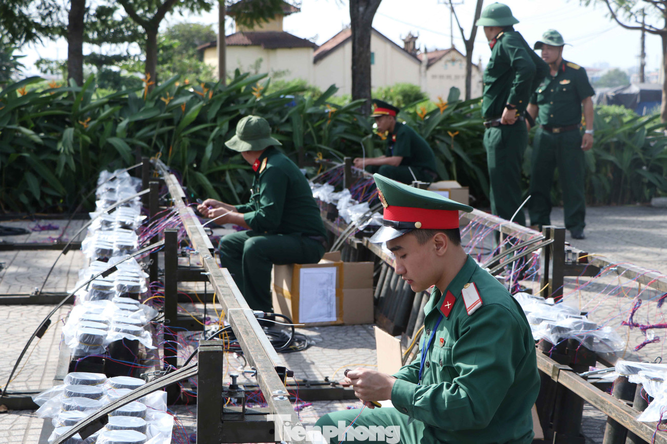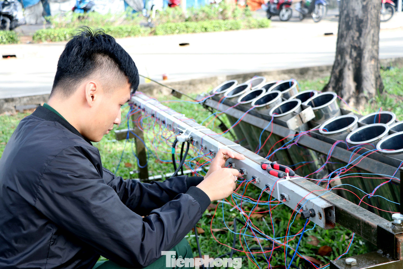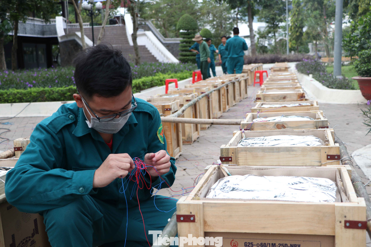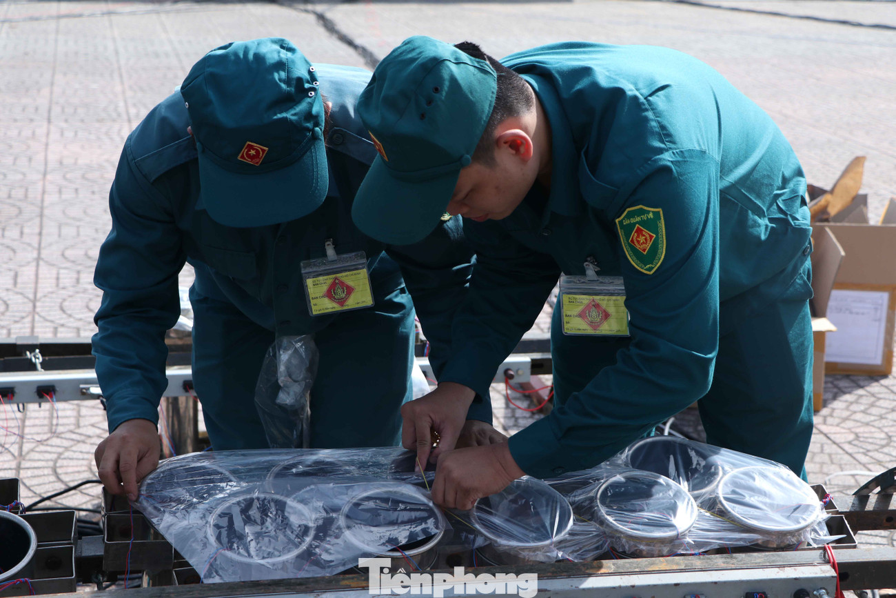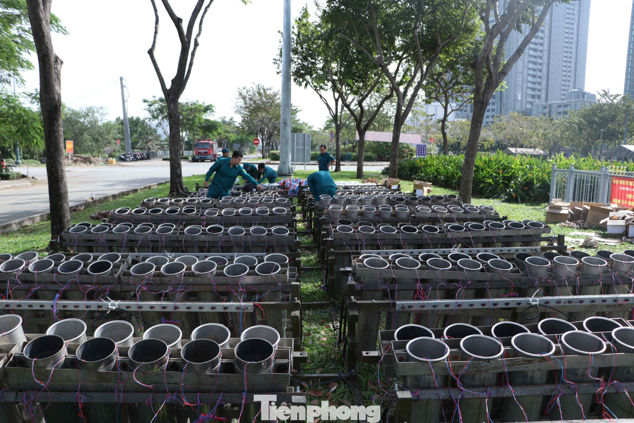 Ghi nhận của phóng viên tại điểm bắn pháo hoa tầm cao ở hầm Thủ Thiêm, lực lượng chức năng đang khẩn trương cho pháo vào nòng, đấu nối dây điện kết nối phòng điều khiển.