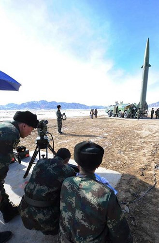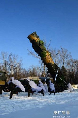 Mặc dù đang trong mùa đông giá lạnh nhưng nhịp độ các cuộc tập trận của Quân đội Trung Quốc vẫn không hề suy giảm. Liên tục trong tháng tháng 1, và đầu tháng 2 các lực lượng của Quân đội Trung Quốc vẫn đều đặn mở nhiều cuộc tập trận quy mô ở khắp nơi. Trong ảnh là bệ phóng tên lửa đạn đạo DF-11 của Quân đoàn Pháo binh số 2 (lực lượng tên lửa chiến lược Trung Quốc) tham gia cuộc tập trận.