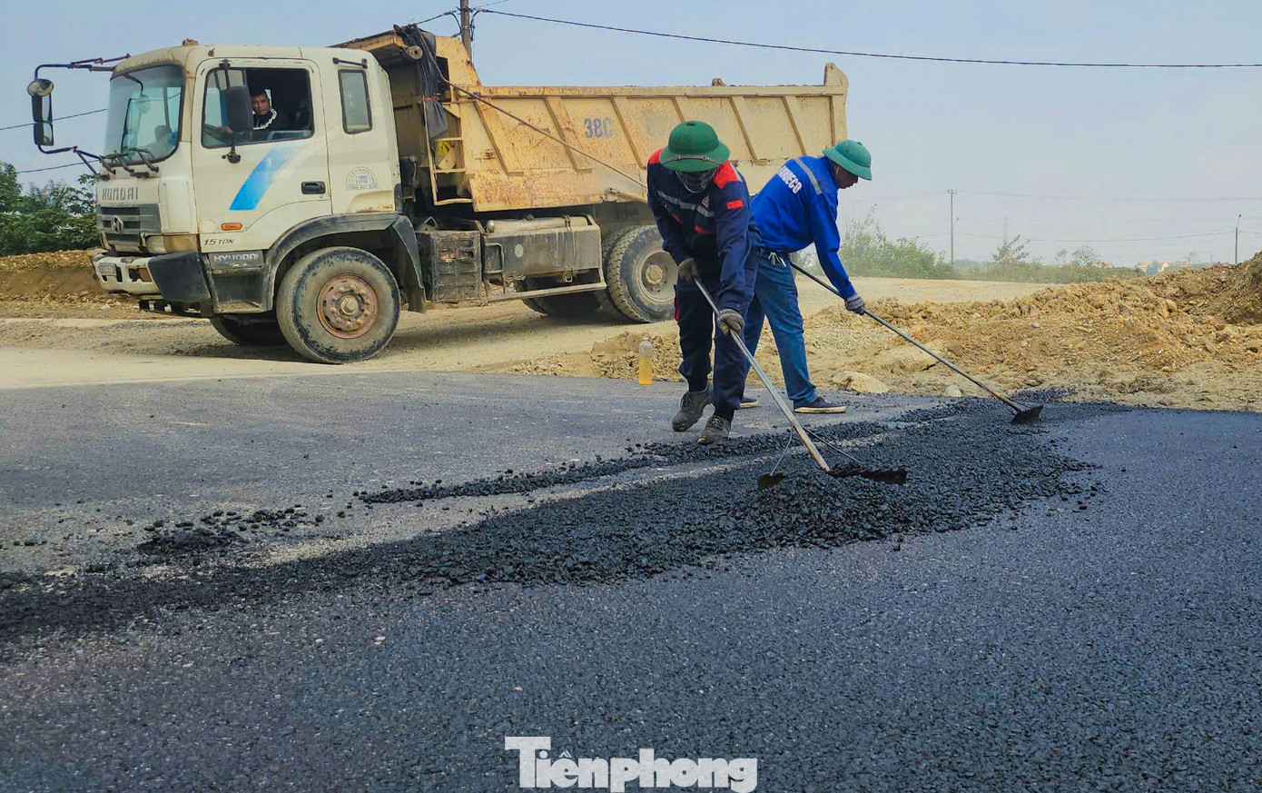 | “Những ngày cuối năm thường mưa nhiều, độ ẩm cao nên để đảm bảo chất lượng mặt đường phải đợi nắng ấm lên mới tiến hành thảm mặt đường”, công nhân đơn vị thực hiện dự án thông tin. |