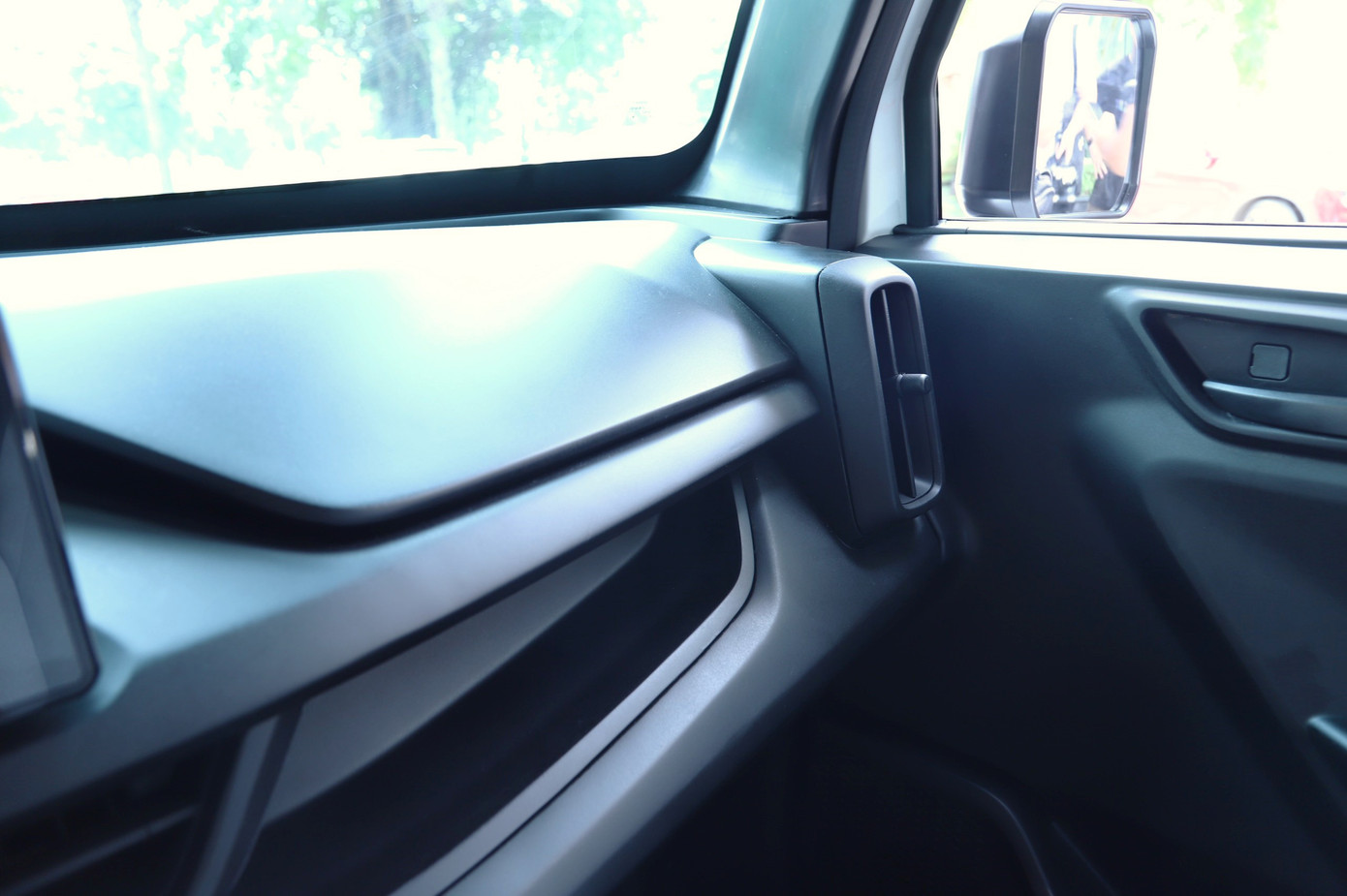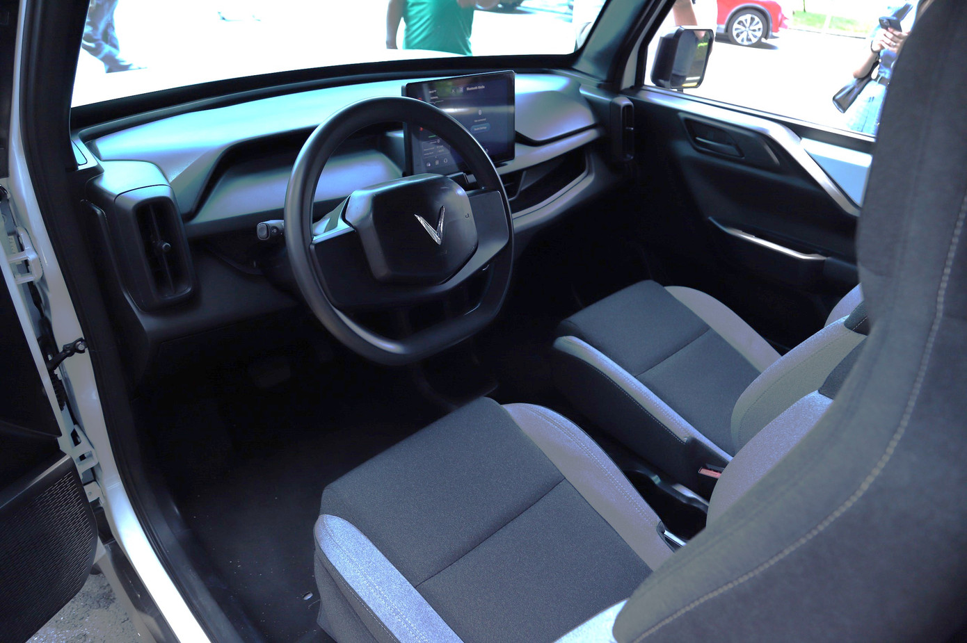Nội thất của VF 3 được thiết kế vô cùng tối giản. Bao gồm ghế nỉ, vô lăng hai chấu, màn hình trung tâm tích hợp bảng đồng hồ, cần số trên vô-lăng và cụm điều khiển trung tâm.
