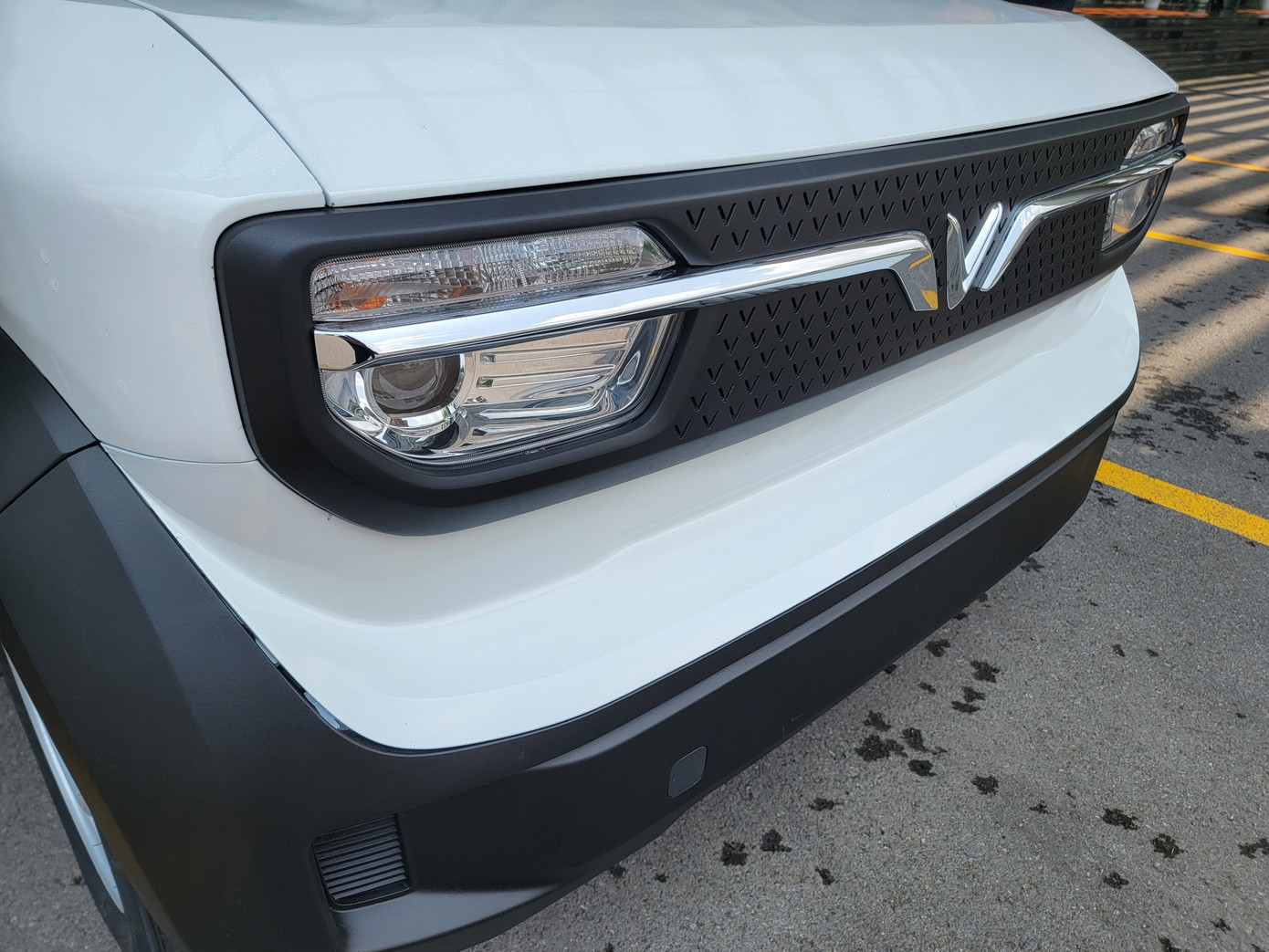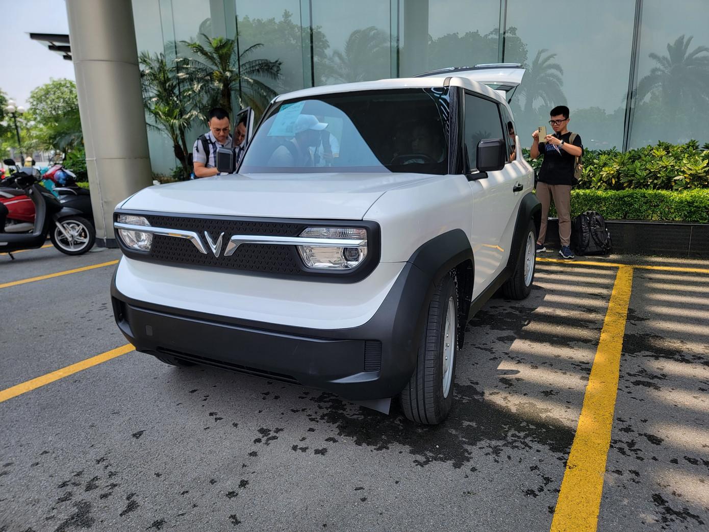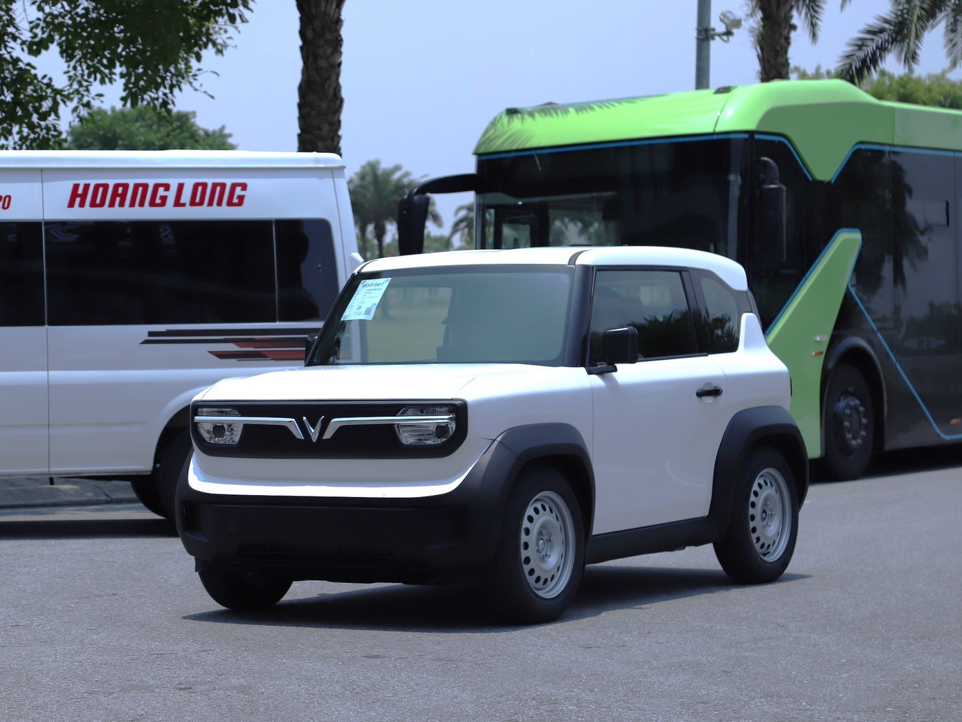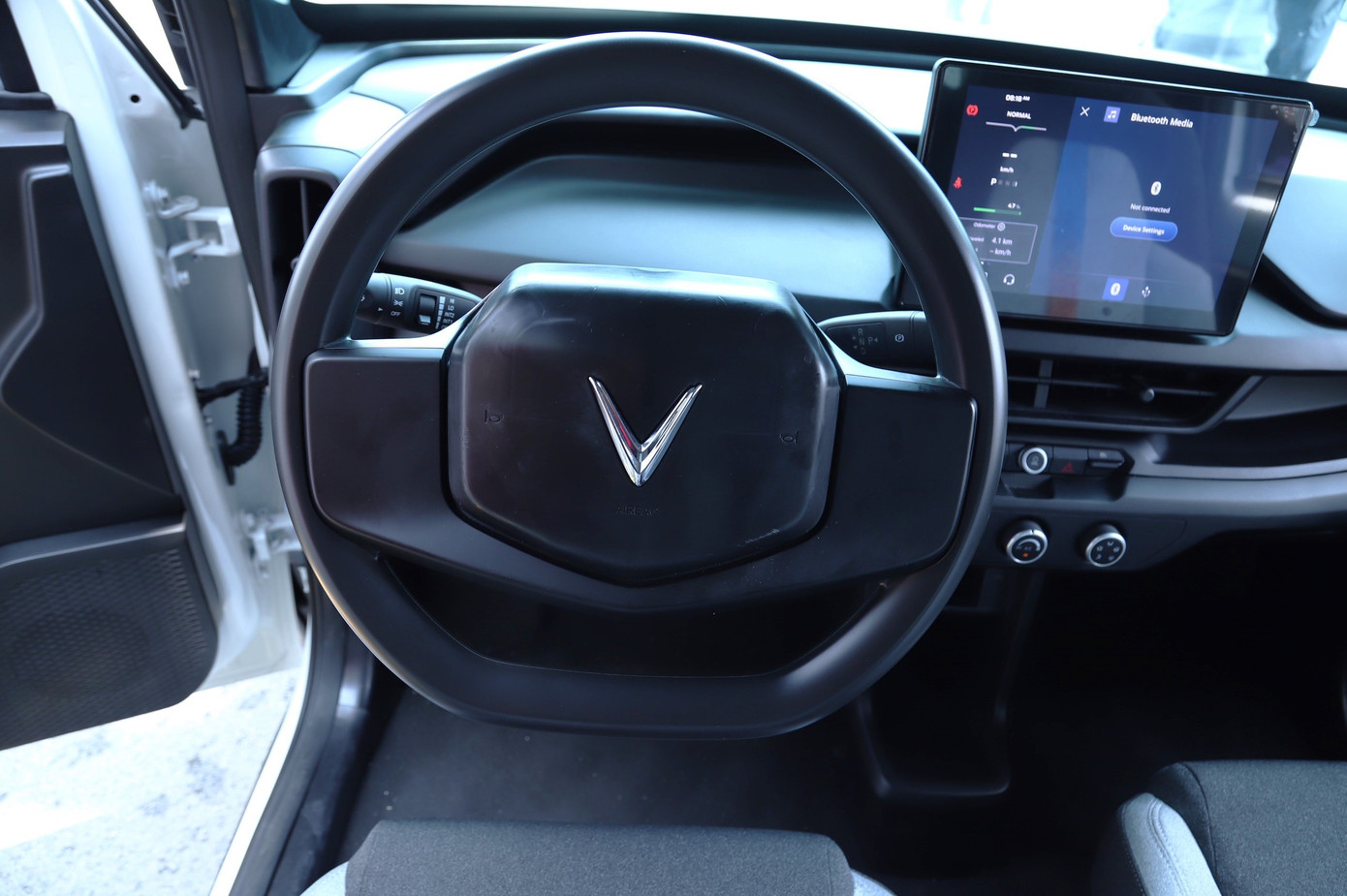 Ở phía trước mũi xe vẫn là logo chữ V với biểu tượng cánh chim ốp nhựa bóng quen thuộc giống như bản concept từng được công bố năm 2023. Phần đầu xe được thiết kế đơn giản, không có lưới tản nhiệt đóng kín hay các cảm biến bởi đây một chiếc xe điện giá rẻ.
