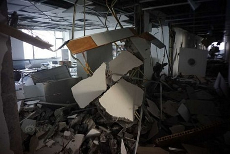 Một tòa nhà bị hư hại nặng sau các vụ nổ