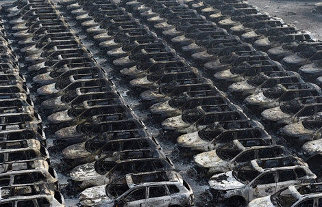 Khung cảnh tại thành phố cảng Thiên Tân (Trung Quốc) giống như ngày tận thế sau vụ nổ tương đương 21 tấn thuốc nổ TNT.