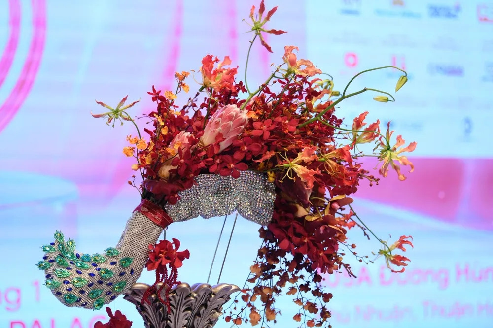 Bó hoa "Phượng hoàng lửa" dành cho tân Hoa hậu trong đêm đăng quang.