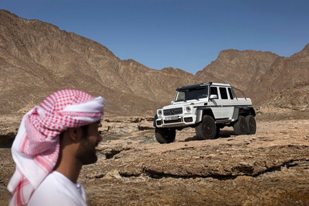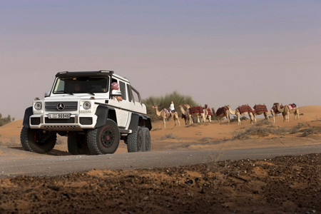 Mới đây, Mercedes-Benz đã trình diễn phiên bản tiền sản xuất của mẫu xe off-road G 63 AMG 6x6. Cùng với những hình ảnh mẫu xe này chinh phục sa mạc nóng bỏng, thương hiệu xe sang của Đức cho biết “Chiếc xe trình diễn có thể dễ dàng vượt qua các đụn cát cao nhất và đi trong sa mạc thoải mái nhờ sự ổn định và chắc chắn”.