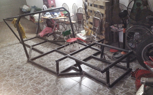 Bộ khung tự vẽ và hàn trước khi gắn vào xe.
