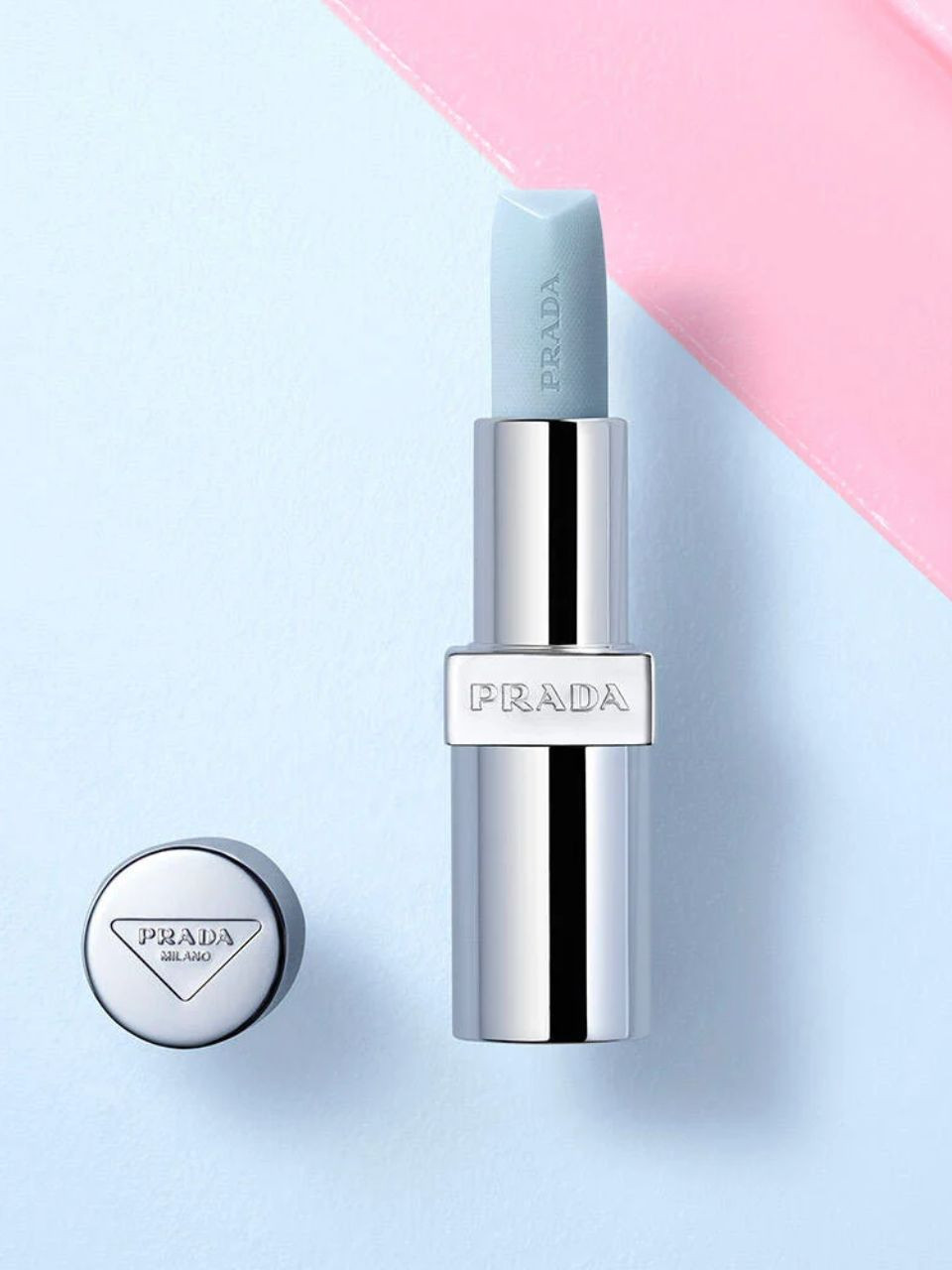 Một trong những sản phẩm thú vị nhất của Prada Beauty chính là Moisturizing Lip Balm U001 Astral Pink. Thỏi son với tông xanh băng giá độc đáo, nhưng ngay khi lướt lên môi, sắc xanh sẽ chuyển sang màu hồng mềm mịn, tự nhiên. Chất son nhẹ tênh, tạo cảm giác lì nhưng không khô, giúp duy trì độ ẩm suốt cả ngày mà không làm môi xỉn màu.