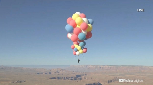 “Giống như phép thuật vậy, tôi cảm thấy như mình đang trôi trong không khí” - Blaine nói qua radio với đội ngũ trợ giúp đang đứng dưới mặt đất ở Page (Arizona, Mỹ). Đó là sau khi anh bay lên cao mà chỉ bám vào đúng một chùm bóng bay. Blaine đặt tên cho sự kiện này là “Bay lên”.