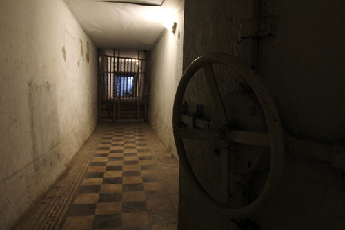 Cửa ra vào các phòng dưới hầm được đúc bằng sắt tấm nguyên khối, đóng mở bằng cách xoay bánh lái như cửa tàu thủy. Phía trong còn có chốt sắt lớn để cài khi gặp sự cố.