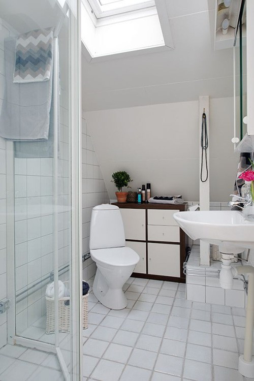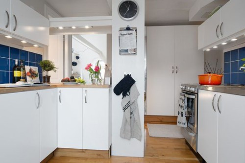 Căn hộ có diện tích chỉ vỏn vẹn 42m2, nhưng không hề chật chội một chút nào nhờ vào thiết kế nội thất và cách trang trí thông minh. Bảng màu được sử dụng ở đây lựa chọn màu trắng làm gam màu cho đạo trong trang trí. Màu trắng được kết hợp với màu đen, kết quả tạo ra một cặp đôi cổ điển và thanh lịch. Sự kết hợp này xuất hiện xuyên suốt căn hộ dưới nhiều hình thái khác nhau.