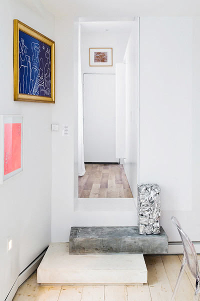 Lấy tông màu trắng làm chủ đạo nhưng căn hộ 65 m2 ở Paris do Manuel Sequeira thiết kế không hề gợi cảm giác lạnh lẽo. Màu cam chấm phá của những chiếc ghế, cửa ra vào hay gối tựa đem tới sự hiện đại cho không gian.