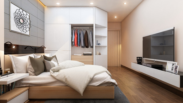 Phòng ngủ được thiết kế khoa học, hiện đại, tối đa hóa công năng sử dụng, gam màu trẻ trung tươi sáng giúp gia chủ thêm tràn trề năng lượng khi thức dậy vào mỗi sớm mai.