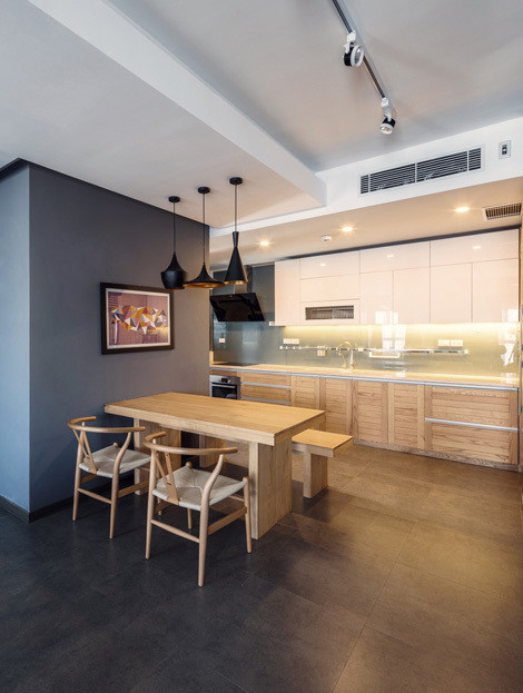 Khu vực bàn ăn được xếp vào gọn gàng hơn sau bỏ bớt phòng kho, giúp khu bếp phía sau cũng thoáng hơn.