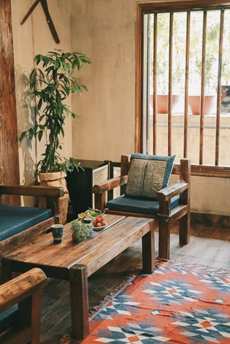 Lấy cảm hứng từ ngôi nhà sàn của đồng bào dân tộc ở Sapa, nội thất chính trong căn hộ được sử dụng là gỗ.