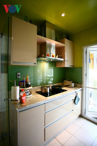 Khu bếp được thiết kế gọn gàng, nhưng vẫn đủ các chức năng, tiện nghi, mang phong cách hiện đại.