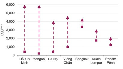 Cụ thể, trong Quý 4/2016, 10 dự án tại bốn quận cung cấp xấp xỉ 515 căn, tăng 3% theo năm. Nguồn cung của Viêng Chăn chỉ chiếm 3% lượng căn của Bangkok, 13% lượng căn của Hà Nội và 34% lượng căn của Yangon.