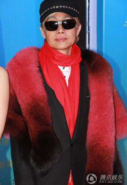 Đạo diễn Kiến Quốc cũng góp mặt trong hoạt động này, ông đeo khăn lông thú đỏ rực.
