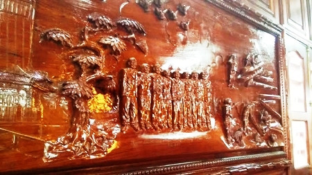 Bức ảnh chạm trổ thành viên trong gia đình trên gỗ đinh hương nguyên khối.