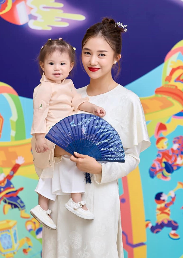 Thời điểm Tết năm ngoái, người đẹp Hà thành được mệnh danh là "chiến thần áo dài" khi diện áo dài đôi cùng con gái từ trước Tết đến hết mùng 4. Mỗi bộ áo dài đều có thiết kế tỉ mỉ, nhẹ nhàng, đẹp mắt.