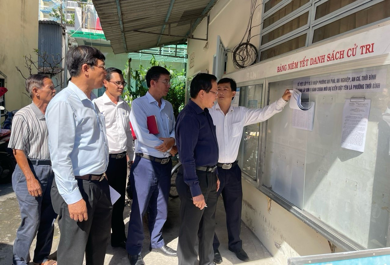 Theo đó, đoàn công tác làm việc với các phường thuộc diện sắp xếp đơn vị hành chính (ĐVHC) cấp xã thuộc quận Ninh Kiều (Cần Thơ), gồm: Thới Bình, An Cư, An Phú và An Nghiệp. Hiện các địa phương này đã thực hiện xong việc rà soát và niêm yết danh sách cử tri tại phường và tại các khu vực lấy phiếu.