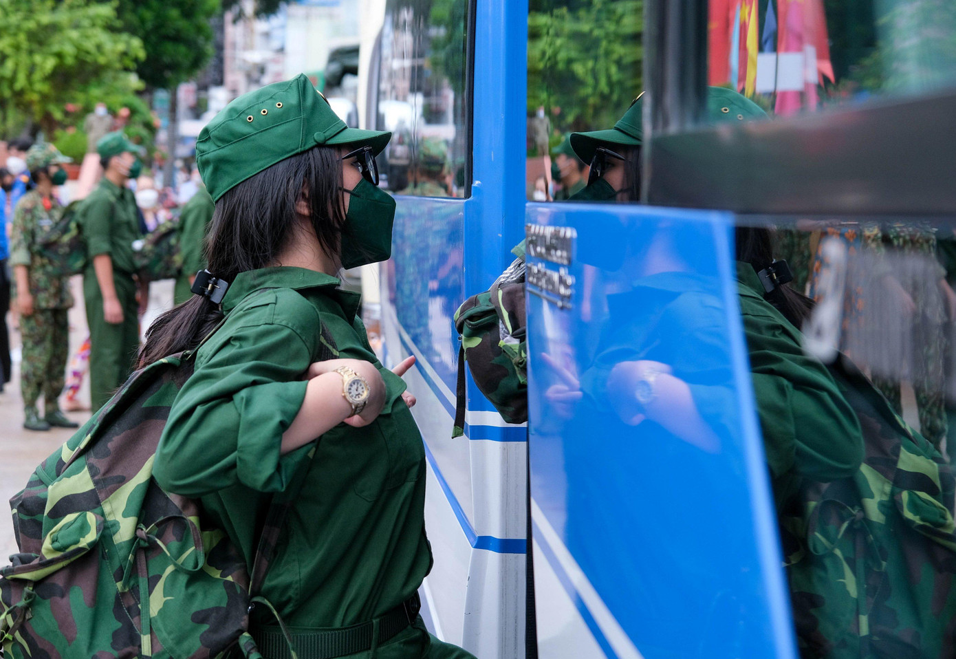 | Các 'chiến sĩ nhí' lên đường tham gia học kỳ quân đội. |