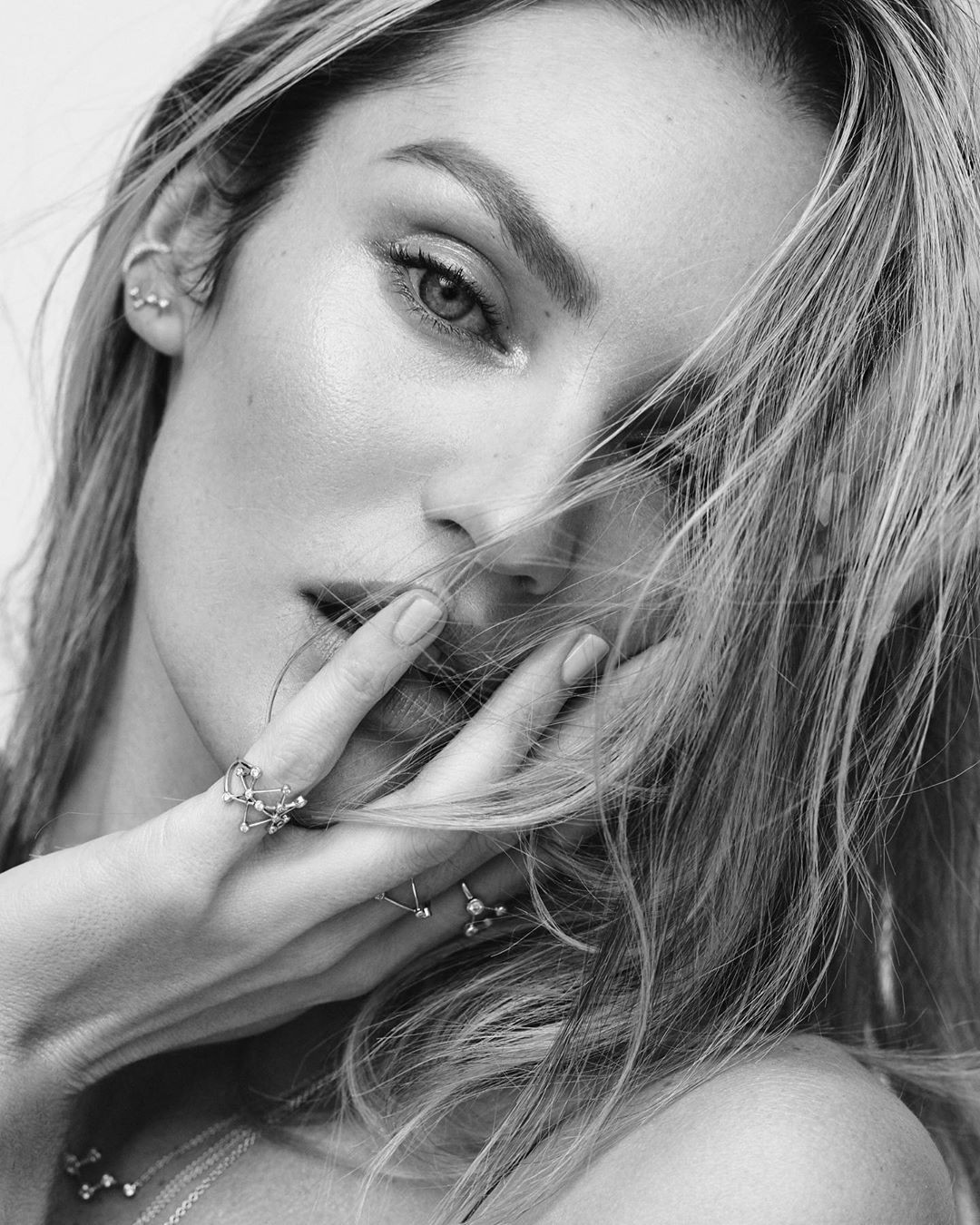 Cận cảnh nhan sắc quyến rũ với làn da không tì vết của Candice trong những shoot hình quảng cáo nữ trang cao cấp Logan Hollowell.