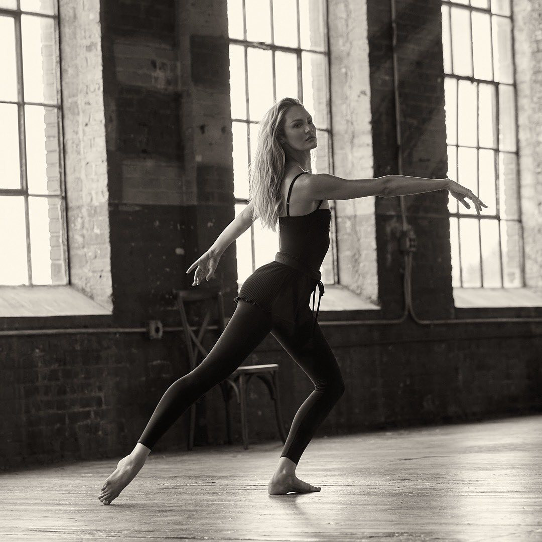 Trong BST mới, Candice Swanepoel lại một lần nữa trổ tài trên sàn tập với những động tác uyển chuyển như bay. Trước khi làm người mẫu, cô từng là vũ công ba lê.