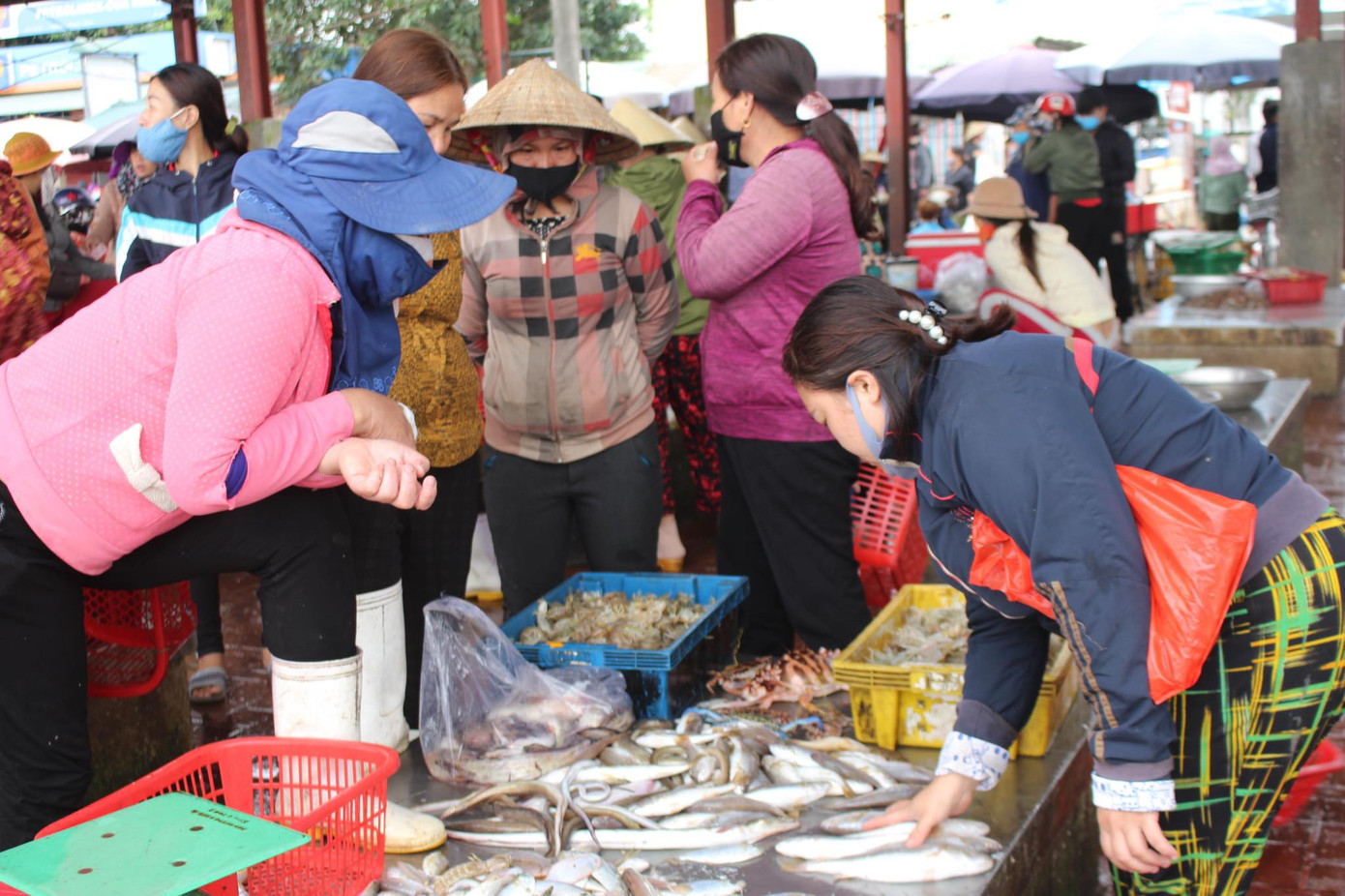 Ngư dân Hoàng Xuân Vinh (trú tại xã Diễn Ngọc, huyện Diễn Châu) cho biết: “Chúng tôi vẫn biết phải đeo khẩu trang nơi công cộng nhưng cảng cá đông người, nhiều lúc làm mệt nên có mở khẩu trang”.