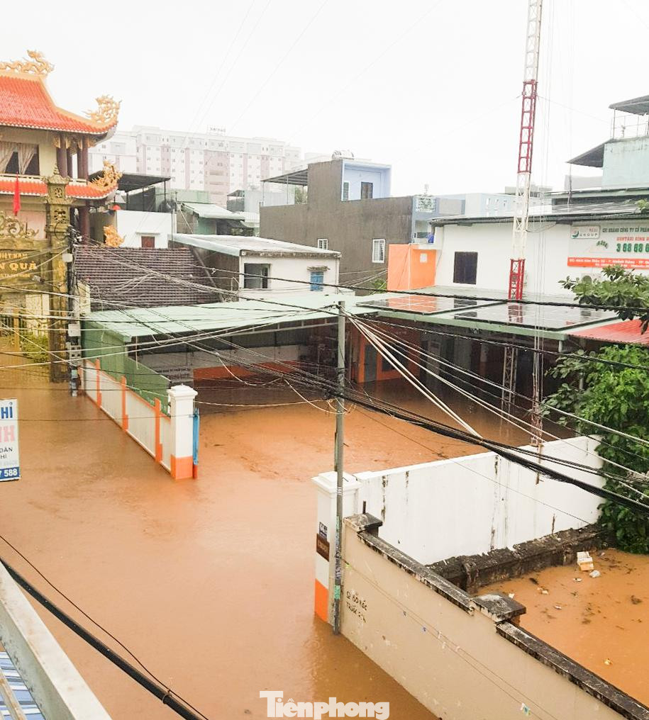 | Cũng tại khu vực phường Ghềnh Ráng, nước lũ xuống nhanh đã khiến nhiều nơi bị ngập chìm trong biển nước. Người dân phải di chuyển ra bên ngoài. Ảnh: Trương Định |