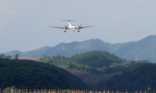 Đây là chiếc King Air 350 cất cánh từ sân bay Nội Bài, Hà Nội. Chiếc máy bay này sẽ có một tuần thực hiện nhiệm vụ bay hiệu chuẩn, trước khi chính thức đưa Cảng hàng không quốc tế Vân Đồn vào khai thác cuối năm nay.