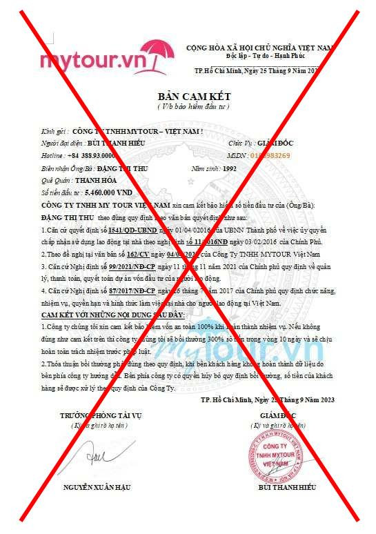 • Sử dụng giấy phép kinh doanh giả để bán hàng không chính thống, giả mạo các đơn hàng của Mytour.
