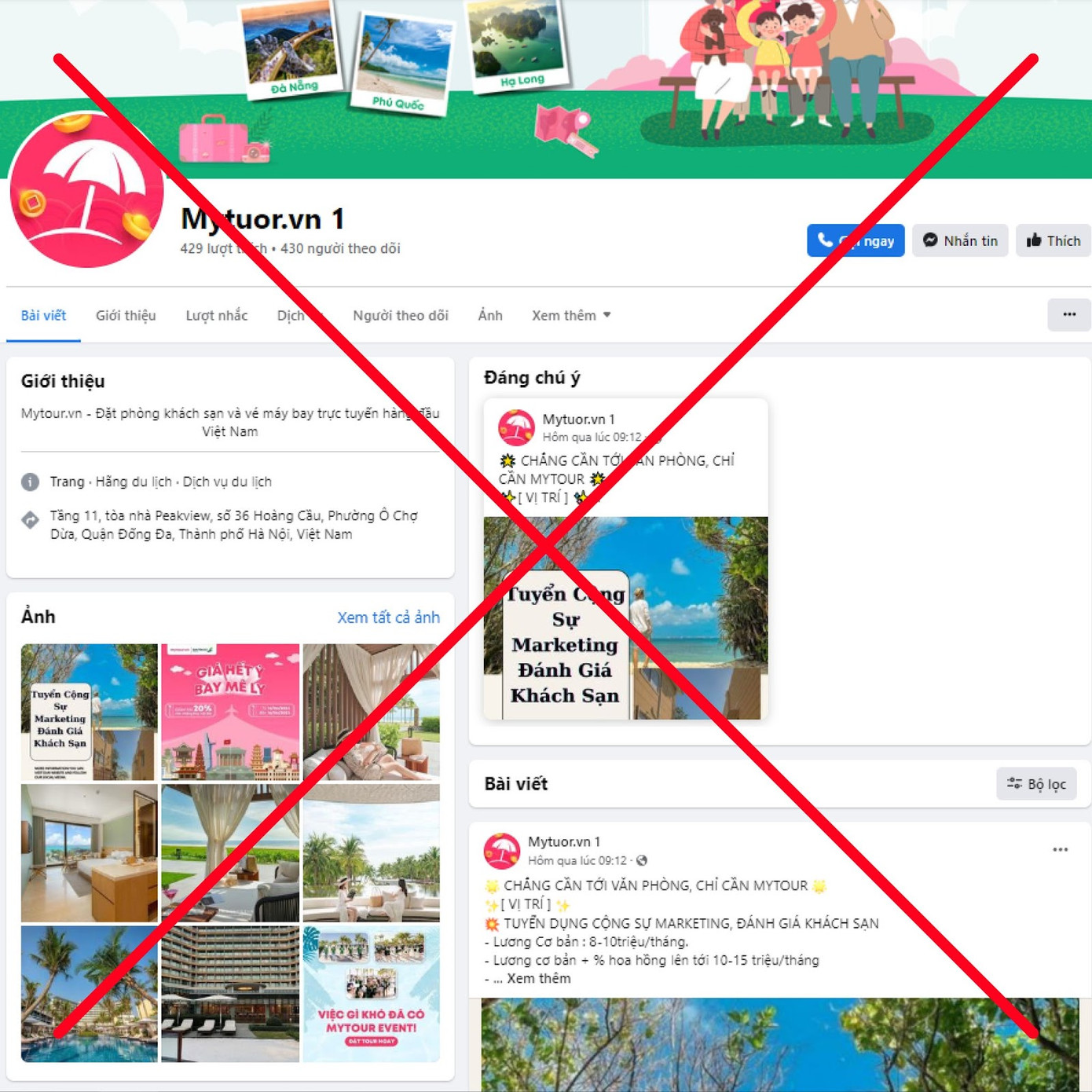 Với hình thức này, các đối tượng lừa đảo sẽ tạo nên những fanpage/website có tên gần giống fanpage/website chính thức của Mytour.vn, sau đó đăng những bài viết kèm hình ảnh và nội dung thông tin tuyển dụng sử dụng hình ảnh của công ty.