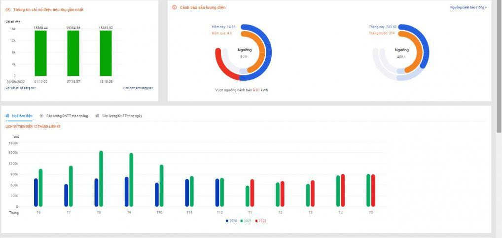 Khách hàng cũng có thể theo dõi sản lượng điện tiêu thụ và nhận các cảnh báo qua tài khoản khách hàng tại website https://cskh.cpc.vn. Giao diện website sau khi đăng nhập tài khoản cũng thể hiện trực quan, chi tiết các số liệu về tình hình sử dụng điện và thông tin cần cảnh báo để khách hàng dễ nhận biết.