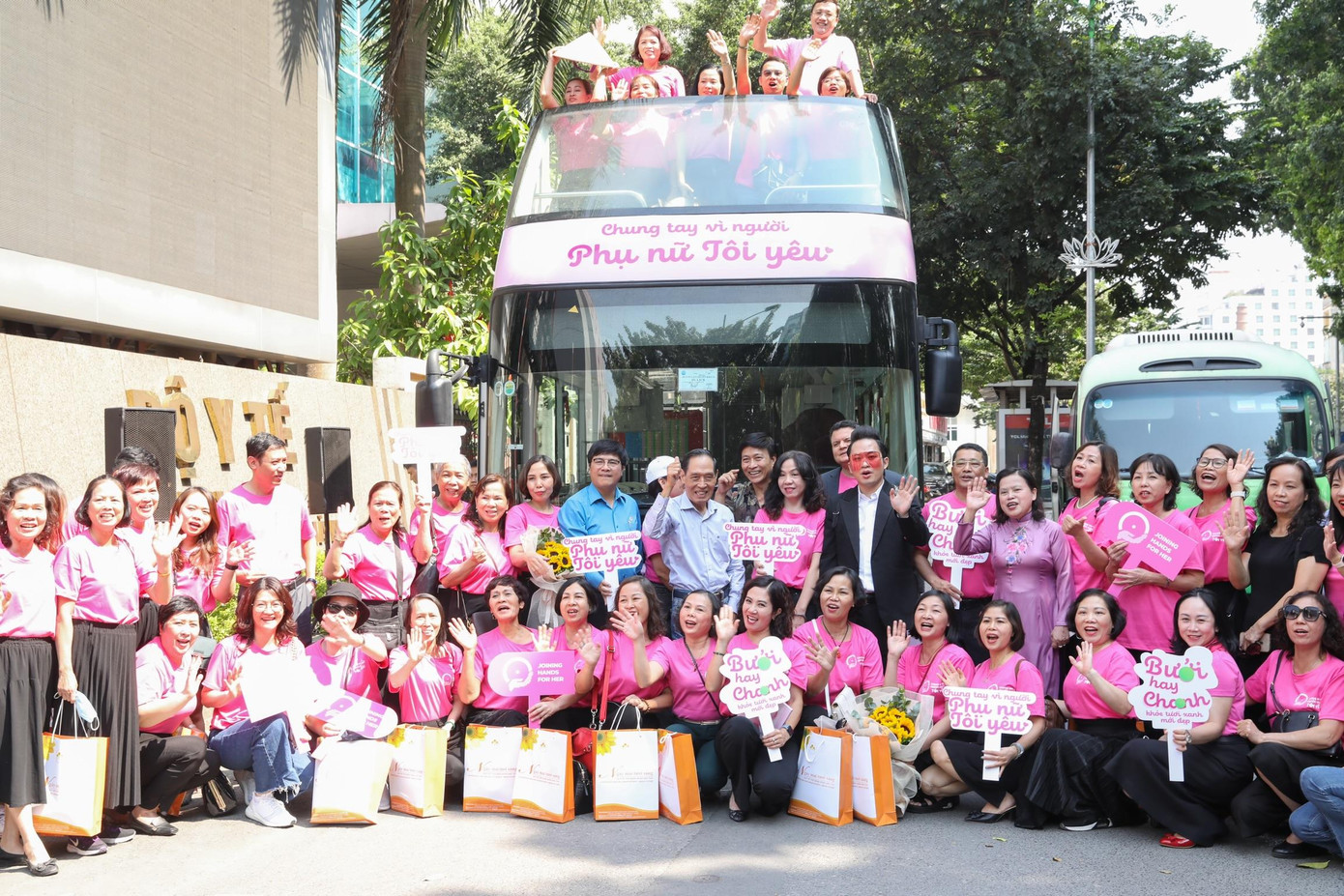 Ngày 18/10, chiến dịch “Chung tay vì phụ nữ tôi yêu 2022” chính thức được khai màn cùng hoạt động diễu hành thú vị “Cùng nơ hồng xuống phố”. Theo đó, những chuyến xe buýt 2 tầng với màu hồng bắt mắt cùng hình ảnh đặc trưng của chiến dịch đã diễu hành qua khắp các con phố sầm uất của Hà Nội.