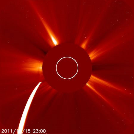 Hình ảnh ghi lại của tàu thăm dò Mặt trời SOHO của NASA sao chổi Lovejoy đang lao thẳng về phía Mặt trời. Sao chổi Lovejoy thuộc nhóm "Kreutz sungrazer" – những sao chổi có quỹ đạo bay rất gần Mặt trời, mới được phát hiện vào ngày 27-11 vừa qua.
