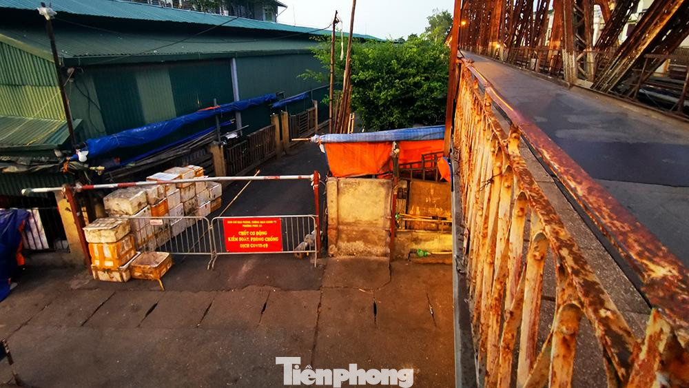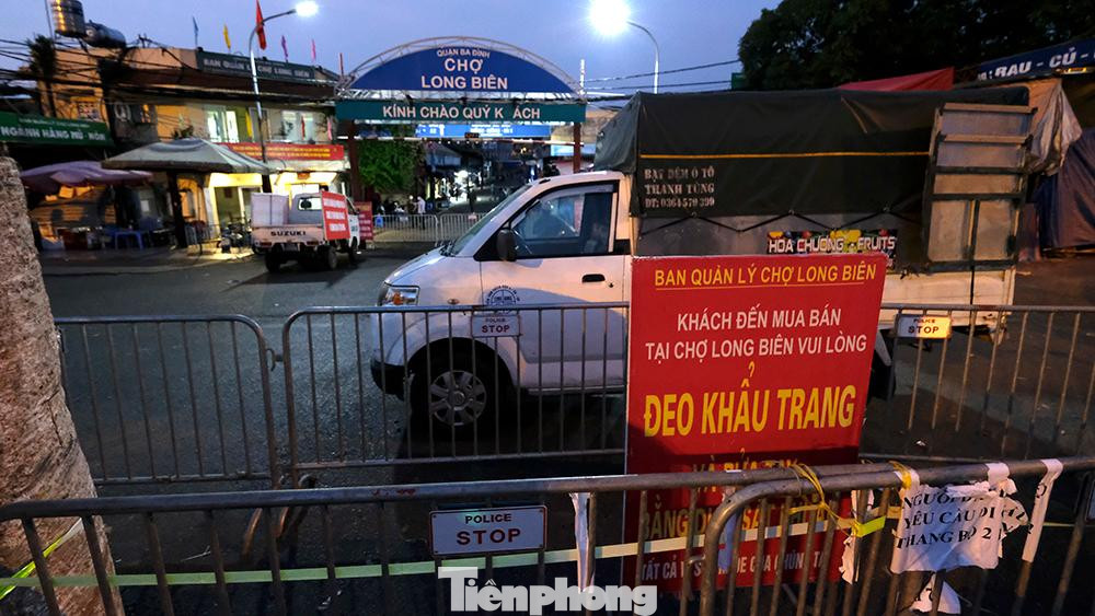 Hai ngày trước, chợ Long Biên chỉ rào chắn phong tỏa một phần chợ là khu vực buôn bán cá tôm. Ngày hôm nay 2 khu còn lại bán hàng rau củ và trái cây cũng bị phong tỏa để phòng dịch.