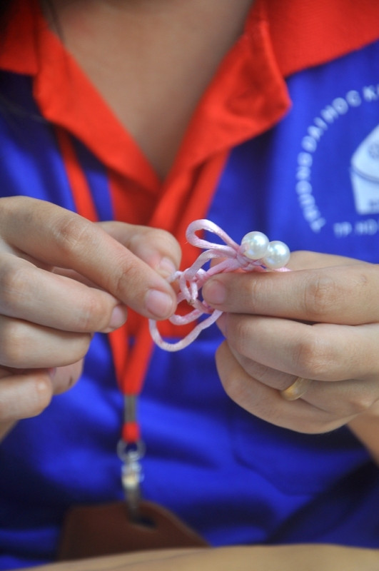 TNV Trương Thị Thanh Trúc, người thiết kế và hướng dẫn các bạn TNV trong nhóm gấp chuồn chuồn cho biết: “Để gấp được 1.000 con chuồn chuồn này, bọn em góp tiền để mua vật dụng về làm. Món quà tuy không lớn nhưng hy vọng sẽ mang lại nhiều may mắn cho các bạn thí sinh”.