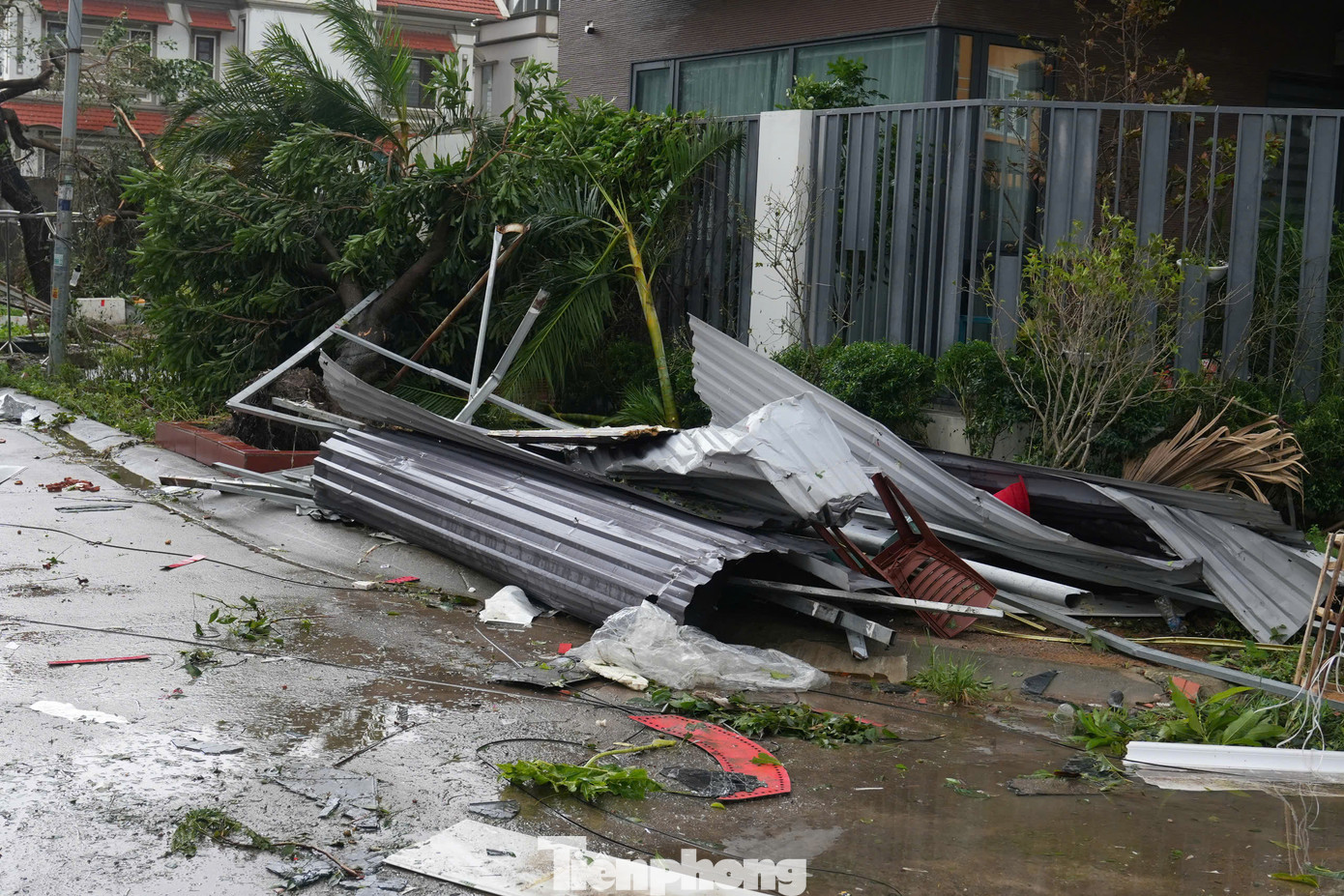 | Quang cảnh tại Bãi Cháy sáng nay không ai nhận ra. Những con đường quen thuộc giờ đây bị bao phủ bởi cây cối gãy đổ, mái tôn, biển quảng cáo bay tứ tung. |