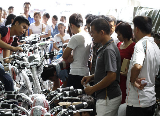Cảnh chen chân mua xe đạp điện cho con đi học hè tại một hãng xe ở Hà Nội vào tháng 7/2013
