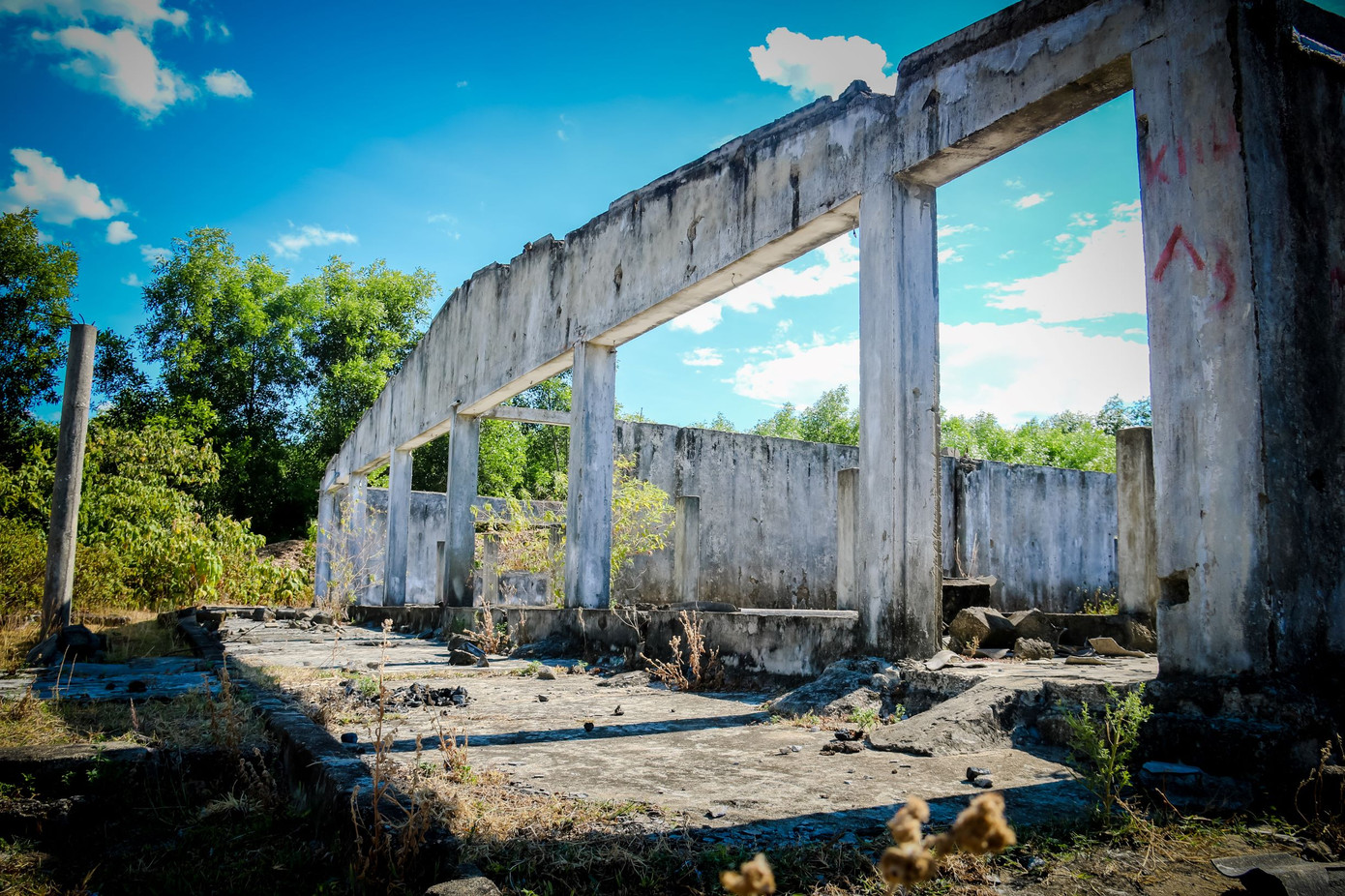 Tất cả các công trình đều bị hư hỏng nặng, trơ sắt thép giữa trời.