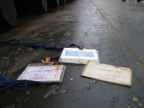 Bảng tên ghi chức vụ và vị trí của thủy thủ đoàn rơi vãi khắp nơi.