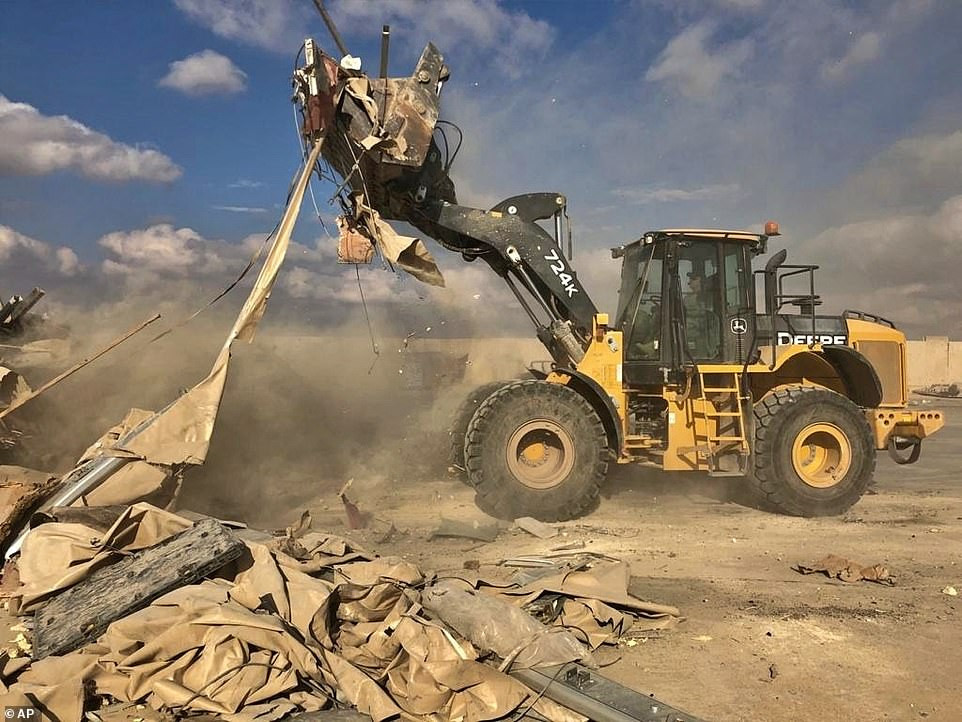 Theo Daily Mail, hình ảnh mới được công bố cho thấy xe ủi và xe nâng đã được huy động để dọn dẹp đống đổ nát trên một khu vực rộng tương đương một sân bóng đá. Ảnh: AP