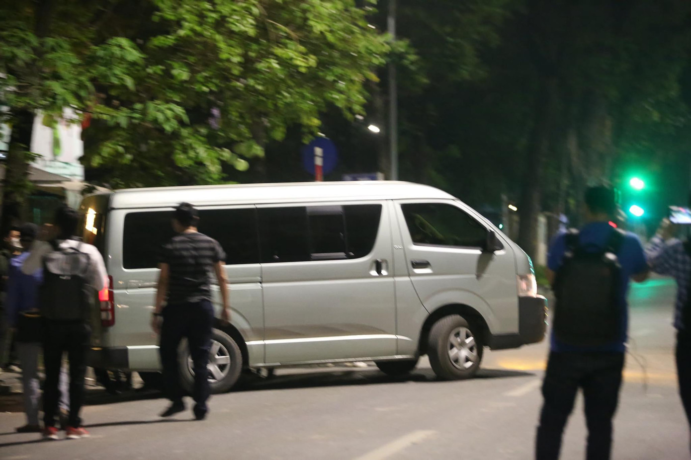 Đến 0h30 ngày 6/4, một số xe ô tô của cơ quan tố tụng bắt đầu rời khỏi điểm khám xét - trụ sở Tân Hoàng Minh tại 24 Quang Trung, Hoàn Kiếm, Hà Nội.