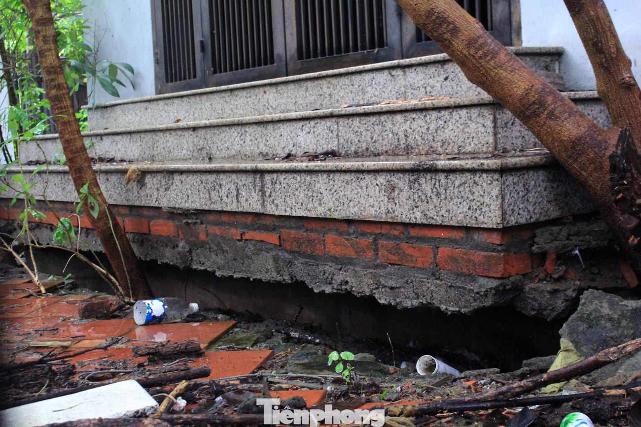 | Do thời gian dài không có người sinh sống, tu bổ, nên nhiều hạng mục như bờ tường, bậc tam cấp của biệt thự đã ngả nghiêng, nứt toác, sụt lún, gây nguy hiểm cho người ra vào. |