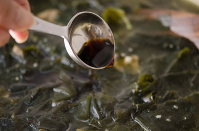 - Cho tiếp xì dầu vào, khi canh sôi, nêm nếm lại tuỳ theo khẩu vị của bạn, tắt bếp, múc ra bát to, dùng nóng với cơm trắng.
