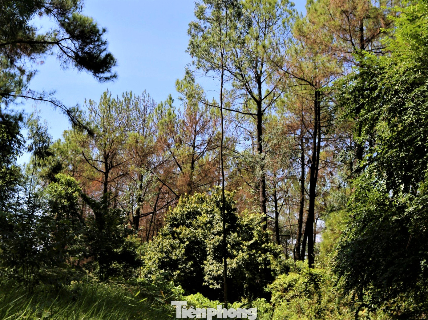 Sâu róm sinh trưởng, phát triển nhanh khiến nhiều phần diện tích ở các tiểu khu 95A, 96B, 103,123, 121, 122B và 124 bị vàng úa, trụi lá, nhiều cây bị chết.