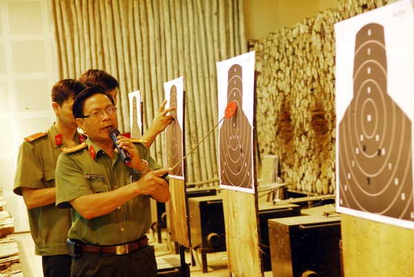 Các vận động viên tham gia gồm cán bộ chiến sĩ có thành tích cao trong đợt kiểm tra nghiệp vụ bắn súng ngắn quân dụng vừa qua của Tổng cục An ninh. Ảnh Lê Linh
