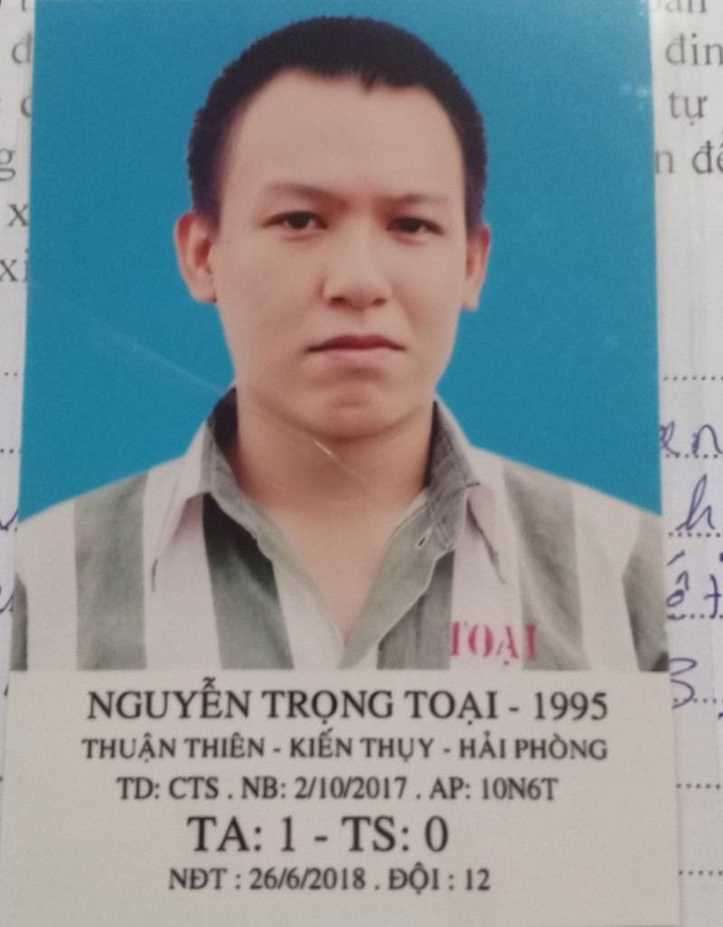 Nguyễn Trọng Toại (26 tuổi) ngụ Kiến Thụy, Hải Phòng bị kết án 10 năm 6 tháng tù về tội cướp tài sản đang chấp hành án tại Phân trại số 3, Trại Giam Xuân Nguyên.